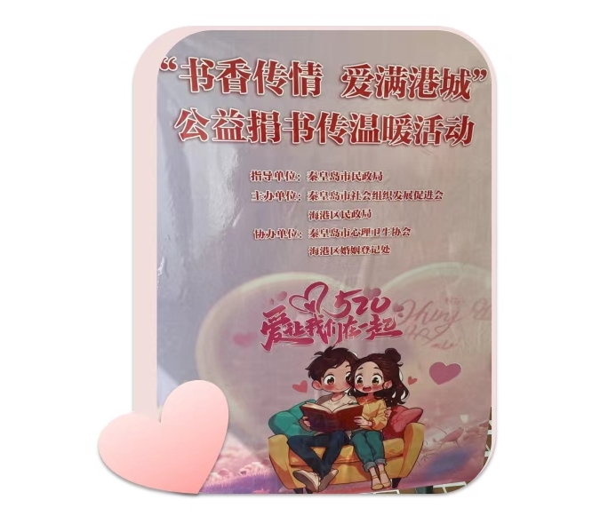 在充滿愛意的“520”這一天,由秦皇島市民政局指導(dǎo),秦皇島市社會組織發(fā)展促進(jìn)會、海港區(qū)民政局主辦,海港區(qū)婚姻登記處、秦皇島市心理衛(wèi)生協(xié)會協(xié)辦的“書香傳情 愛暖港城”——婚姻登記新政策解讀與公益捐書行動在海港區(qū)婚姻登記處溫馨啟幕。眾多新人與市民共同參與,現(xiàn)場愛意與書香交織。