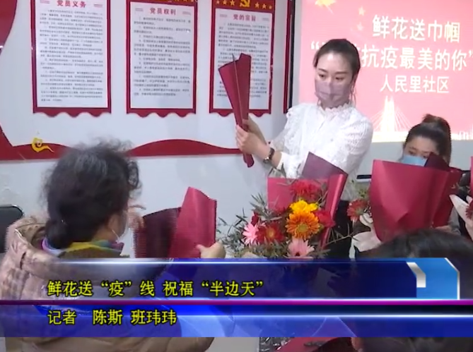在“三八”婦女節(jié)到來(lái)之際,海港區(qū)文化路街道人民里社區(qū)開(kāi)展“鮮花送巾幗,致敬抗疫最美的你”活動(dòng),為轄區(qū)工作在抗疫一線的女性醫(yī)務(wù)人員送去節(jié)日的祝福。