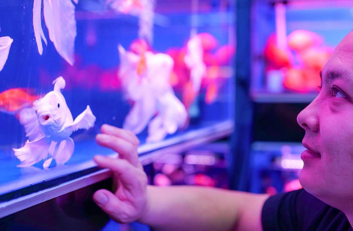市民在河北省秦皇島市海港區(qū)洋洋花卉市場選購觀賞魚。