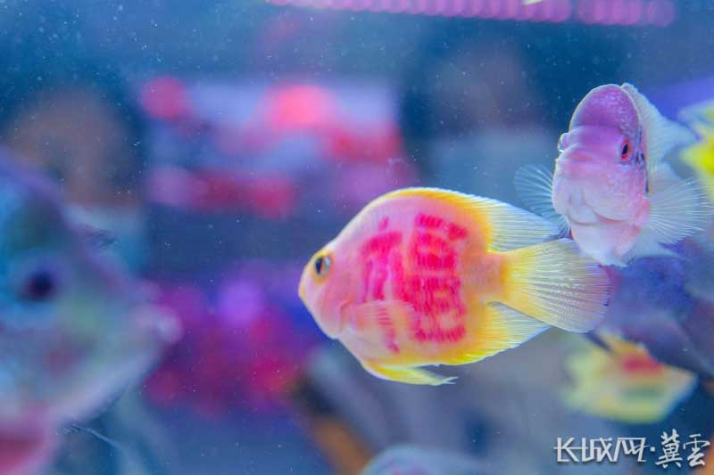 洋洋花卉市場帶有“?!弊值挠^賞魚。郭楠 攝