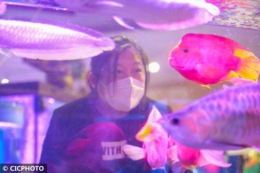 2023年1月11日,市民在河北省秦皇島市海港區(qū)一家花卉市場選購觀賞魚。CICPHOTO/郭楠 攝