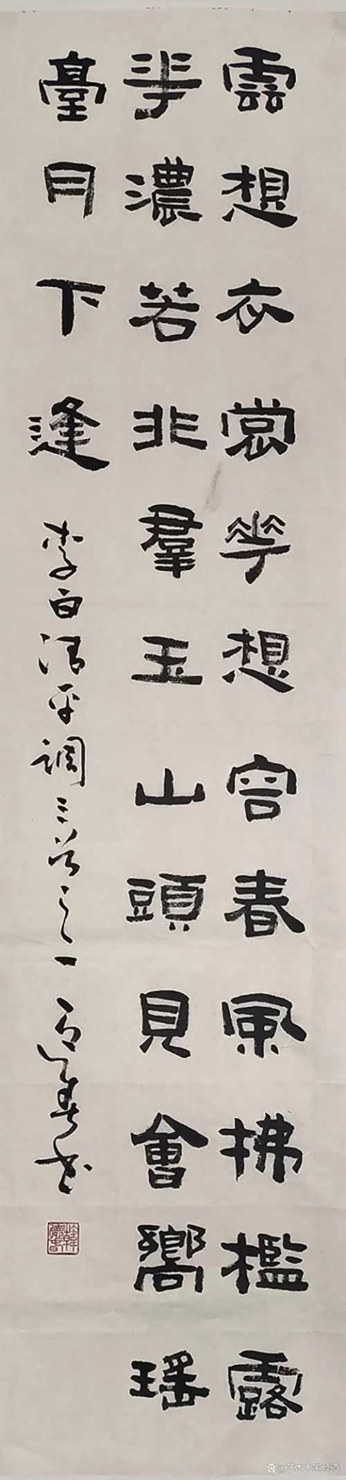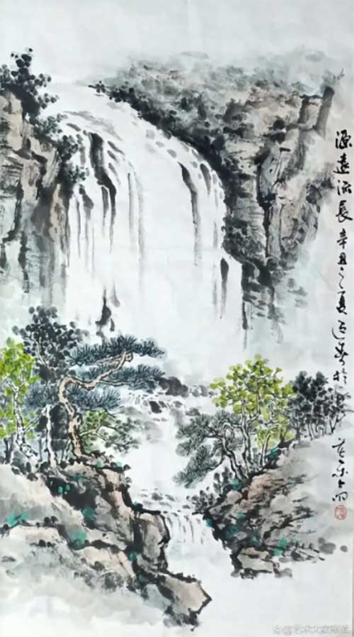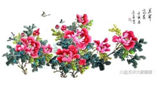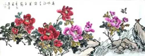 丹青敷彩歌盛世,翰墨流霞抒豪情。韓德春的作品設(shè)色,艷而不俗,雅俗共賞,盡顯雅致高潔之感。牡丹自古被人視為國花而他更是將作品勾勒出一幅平靜安寧的自然景色,把牡丹的高雅貴氣表現(xiàn)的淋漓盡致。而他的書法更是充滿著渾厚的文化底蘊(yùn),筆法道逸瀟灑風(fēng)格獨(dú)特,布控規(guī)整有序,用筆凝練精到,奔放自如,自出新意,氣韻生動(dòng)。作品實(shí)現(xiàn)了景致與情懷、傳統(tǒng)與個(gè)性的和諧統(tǒng)一,翰墨之間彰顯了寬廣豐富的文化內(nèi)涵和緊貼時(shí)代的氣息脈搏,以及深厚的藝術(shù)品味和遠(yuǎn)大高潔的志向。有大寧靜、大自在之意境,深得名家贊賞和人們喜愛。言有盡而意無窮,行成于思,業(yè)精于勤,盡精微、至廣大,讓人不禁為之贊嘆!