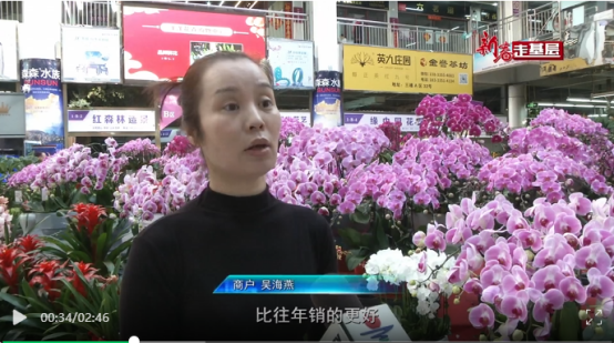 春節(jié)期間,洋洋花卉市場(chǎng)里擺滿了種類(lèi)繁多的年宵花,空氣中彌漫著陣陣花香,色彩繽紛的蝴蝶蘭,寓意紅紅火火的紅掌和鴻運(yùn)當(dāng)頭,清新淡雅的蕙蘭等各類(lèi)花卉吸人眼球,前來(lái)選購(gòu)的市民絡(luò)繹不絕。