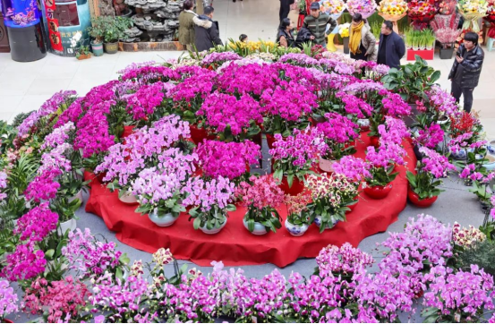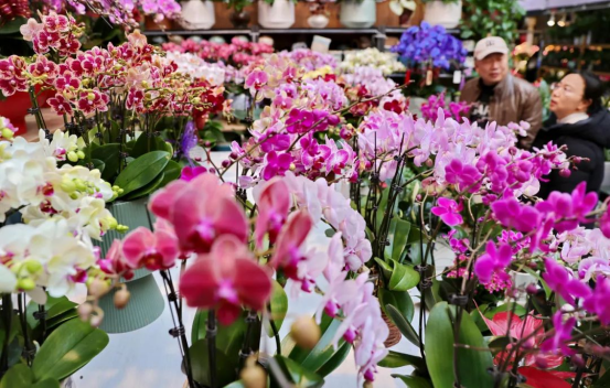 蝴蝶蘭、牡丹、百合、冬青、銀柳、富貴竹……作為年味氣氛組的顏值擔(dān)當(dāng),年宵花被越來越多的人列入“年貨必備清單”。走進(jìn)洋洋花卉市場,陣陣花香迎面撲來,沁人心脾?;斔苹鸬镍欉\(yùn)當(dāng)頭、高貴典雅的蝴蝶蘭、寓意吉祥的杜鵑花……不同種類的年宵花競相開放、各展風(fēng)姿,其鮮艷的色彩增添了生機(jī)勃勃、欣欣向榮的節(jié)日氛圍。