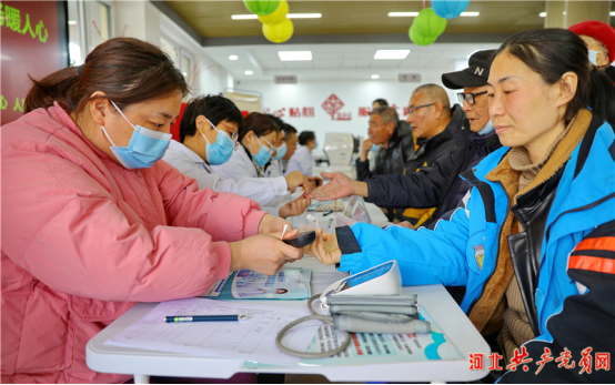 3月5日,河北省秦皇島市海港區(qū)文化路街道人民里社區(qū)愛“新”驛站內(nèi),秦皇島市第三醫(yī)院醫(yī)護工作者為新就業(yè)群體婦女測量血糖。