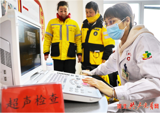 3月5日,河北省秦皇島市海港區(qū)文化路街道人民里社區(qū)愛“新”驛站內(nèi),秦皇島市第三醫(yī)院醫(yī)護工作者為新就業(yè)群體婦女進行超聲檢查。