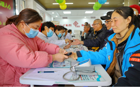 3月5日,河北省秦皇島市海港區(qū)文化路街道人民里社區(qū)愛“新”驛站內(nèi),秦皇島市第三醫(yī)院醫(yī)護(hù)工作者為新就業(yè)群體婦女測量血糖。(工人日報通訊員 曹建雄 攝)