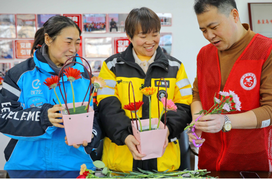 當(dāng)日,河北省秦皇島市海港區(qū)文化路街道人民里社區(qū)聯(lián)合海港區(qū)委社會工作部、海港區(qū)外賣行業(yè)黨委開展“關(guān)愛新就業(yè)群體婦女”活動。該活動邀請秦皇島市第三醫(yī)院等機(jī)構(gòu)的醫(yī)護(hù)人員、花藝志愿者走進(jìn)社區(qū)愛“新”驛站,通過醫(yī)護(hù)人員為新就業(yè)群體婦女體檢、花藝志愿者帶領(lǐng)新就業(yè)群體婦女體驗插花等方式,送上一份社區(qū)的關(guān)愛和祝福,共迎“三八”國際勞動婦女節(jié)。