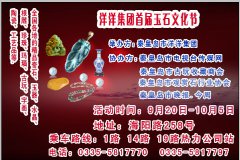 弘揚玉石文化、展示古韻新風、彰顯文化魅力。為喜迎祖國65周年華誕,秦皇島洋洋集團于9月20日—10月5日在新花卉廣場舉辦“洋洋集團首屆玉石文化節(jié)”活動,此活動旨在傳承玉石文化