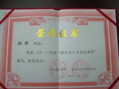 秦皇島洋洋集團總裁劉洋榮獲“2013年度秦皇島十