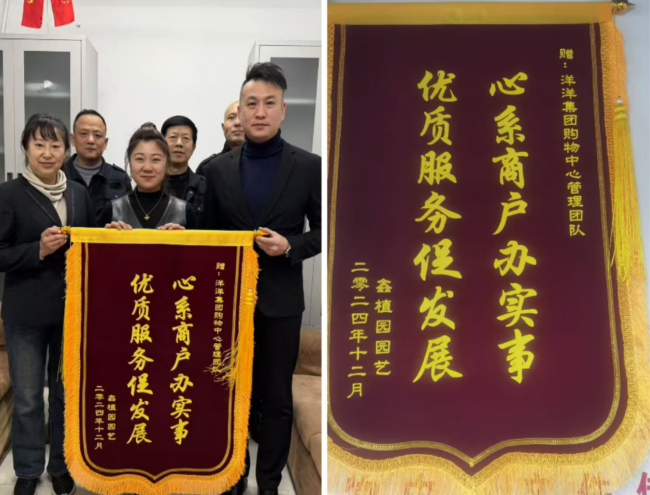 冬至已過,寒意漸濃,而秦皇島市洋洋花卉購物中心內(nèi)卻暖意洋洋。12月26日,在一片溫馨的氛圍中,鑫植園園藝經(jīng)營商家滿懷感激地來到商場辦公室,鄭重地送上一面錦旗,其上“優(yōu)質(zhì)服務(wù)促發(fā)展、心系商戶辦實事”的字樣熠熠生輝。這面錦旗,不僅是對商場工作的高度贊譽,更是一份承載著商戶信任的沉甸甸責(zé)任。