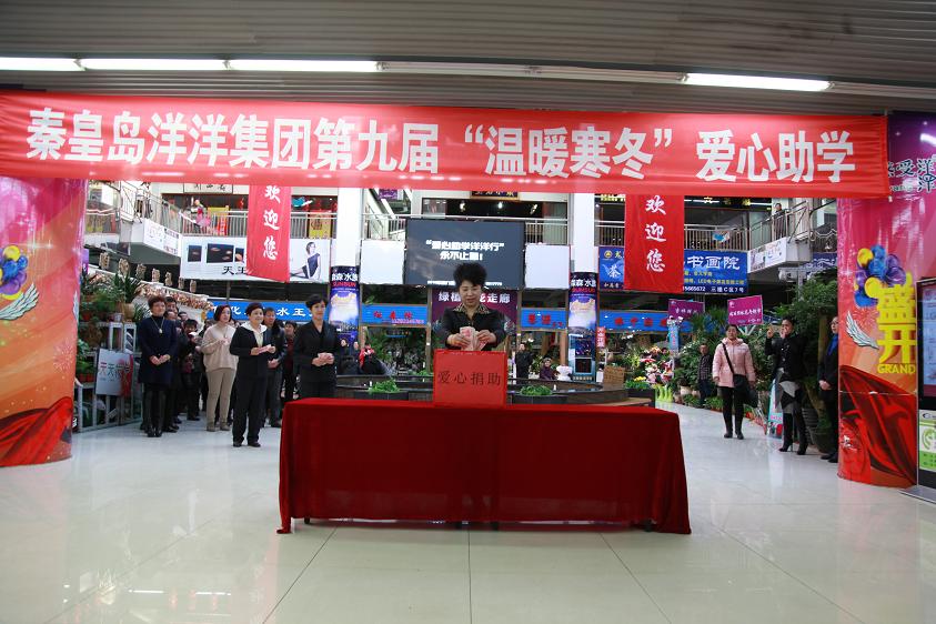 2016年11月28日,在蕭瑟寒冷的冬日,秦皇島市新洋洋花卉商場內,洋溢著春意般的溫暖,“秦皇島第九屆溫暖寒冬愛心助學募捐現(xiàn)場活動正在進行,新花卉、購物中心、古玩城約700余商戶共同參與愛心捐助活動中,共收到愛心捐款約5萬余元。
