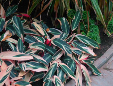 本屬植物 株形矮小,葉片圓形或卵形,具有各色美麗的斑紋,為主要觀賞部位。市場上常見的品種有紫背竹芋、天鵝絨竹芋、波浪竹芋、青蘋果竹芋等。