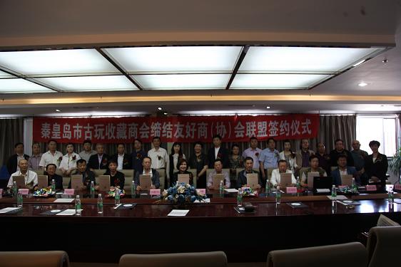 五月的秦皇島,處處充滿著清新與芳香,五月的港城大地迎來了又一次古玩文化的盛會(huì)。2017年5月13日上午10:00時(shí),由秦皇島市文廣新局、秦皇島市古玩收藏商會(huì) 、秦皇島洋洋集團(tuán)主辦。由秦皇島市美術(shù)家協(xié)會(huì)、秦皇島市書法家協(xié)會(huì)、秦皇島市女美術(shù)家協(xié)會(huì)、秦皇島市紅色紀(jì)念品研究交流協(xié)會(huì)、秦皇島市觀賞石協(xié)會(huì)、秦皇島市洋洋古玩城有限公司、秦皇島市洋洋花卉有限公司共同協(xié)辦的秦皇島第八屆全國(guó)古玩交流大會(huì)暨秦皇島市古玩收藏商會(huì)締結(jié)友好聯(lián)盟簽約儀式在新洋洋花卉拉看了序幕,大會(huì)設(shè)置2個(gè)展廳,4個(gè)展區(qū),分別是地?cái)偨涣鲄^(qū)、精品展示區(qū)、女畫家作品賞析區(qū)、現(xiàn)場(chǎng)名家書畫展示區(qū),參加展會(huì)的由來自全國(guó)52個(gè)城市的古玩經(jīng)營(yíng)者325戶,吸引我市及周邊城市古玩愛好者數(shù)萬人。本次活動(dòng)以展會(huì)為媒介,成功要求了國(guó)內(nèi)10個(gè)城市的行業(yè)商會(huì)、協(xié)會(huì)到場(chǎng),并在全國(guó)各地古玩愛好者及我市文廣新局、文聯(lián)、工商業(yè)聯(lián)、美協(xié)領(lǐng)導(dǎo)的見證下,秦皇島市古玩收藏商會(huì)作為發(fā)起方分別與北京市古玩業(yè)協(xié)會(huì)、天津市收藏家協(xié)會(huì)、哈爾濱收藏協(xié)會(huì)、長(zhǎng)春奇石古玩商會(huì)、保定古玩業(yè)商會(huì)、唐山市收藏愛好者協(xié)會(huì)、內(nèi)蒙古赤峰市古玩業(yè)商會(huì)、沈陽市古玩業(yè)商會(huì)、錦州古玩業(yè)商會(huì)、阜新古玩業(yè)商會(huì)十個(gè)城市簽訂友好聯(lián)盟締結(jié)協(xié)議,古玩行業(yè)友好聯(lián)盟的成功締結(jié)不僅在行業(yè)內(nèi)建立了相互互信任、相互學(xué)習(xí)和交流的互動(dòng)機(jī)制,更是實(shí)現(xiàn)了“信息互遞、資源共享”,我們將牽手各地區(qū)商(協(xié)會(huì))緊密合作、攜手并進(jìn)、為推進(jìn)古玩行業(yè)發(fā)展楊帆助力。