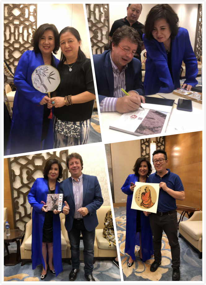 9月18日晚云河集團(tuán)在香格里拉酒店舉行交流筆會(huì),西班牙皇家藝術(shù)家協(xié)會(huì)主席菲利斯,秦皇島市婦聯(lián)主席單慧英,秦皇島市教育局副局長(zhǎng)孟凡功,北戴河副區(qū)長(zhǎng)金晶,秦皇島市女企業(yè)家協(xié)會(huì)會(huì)長(zhǎng)、河北英皇集團(tuán)、洋洋集團(tuán)董事局主席劉洋,文化產(chǎn)業(yè)聯(lián)合會(huì)主席于英斌,秦皇島美協(xié)主席宋鴻筠,中國(guó)傳媒大學(xué)教授王雅平,中國(guó)文化傳媒集團(tuán)教授徐航相約共同參加了交流筆會(huì)。
