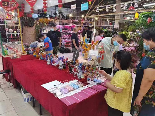 2022年中秋小長假期間,在嚴格落實疫情防控措施的前提下,洋洋花卉購物中心以“中秋望明月、千里思古情”為主題開展了中秋思古展銷活動。以節(jié)興商促消費,在滿足群眾對傳統(tǒng)手工藝向往的同時,著力促進活動現(xiàn)場的銷售,活動現(xiàn)場主要以新進戶玥汐手工精湛的傳統(tǒng)手工藝品展示為主——純手工制作的手鞠球、串珠金鳳頭面、纏絲花發(fā)簪、揚州刺繡等,結(jié)合現(xiàn)代鋁線手工藝品的展現(xiàn),給廣大顧客帶來了全新的體驗,往來顧客對于從未見過的手工藝驚嘆不已。