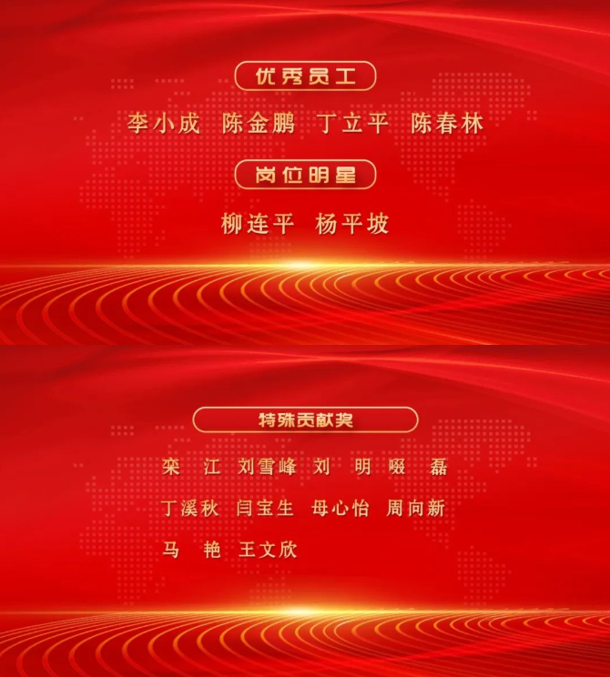 一路并肩前行,一路向愛(ài)生長(zhǎng),回顧過(guò)去的一年,無(wú)數(shù)個(gè)我們,在各自崗位上踔厲奮發(fā)、勇毅前行,相信奮斗實(shí)現(xiàn)夢(mèng)想,堅(jiān)信希望就在前方,面對(duì)疫情挑戰(zhàn),我們的項(xiàng)目在挑戰(zhàn)中持續(xù)推進(jìn),我們的團(tuán)隊(duì)在拼搏中不斷成長(zhǎng),我們的2022因?yàn)槟銈兊呐惆樽銐蚓剩?br /> 衷心祝賀獲獎(jiǎng)?wù)撸銈兊陌駱泳駥⒓?lì)全體員工積極進(jìn)取,再上一層樓!希望受表彰的員工再接再厲,戒驕戒躁,再立新功;同時(shí)全體員工要以他們?yōu)榘駱?,?wù)實(shí)創(chuàng)新,奮發(fā)有為,以更好的精神面貌投入到集團(tuán)事業(yè)發(fā)展中,為打造百年品牌企業(yè)開(kāi)拓進(jìn)取、奮發(fā)拼搏、勇往直前,一起去創(chuàng)造更加燦爛美好的明天!獲獎(jiǎng)名單