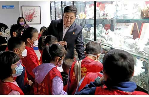 秦皇島市古玩收藏商會常務(wù)副會長兼秘書長李峰為小記者們講解紅色文化