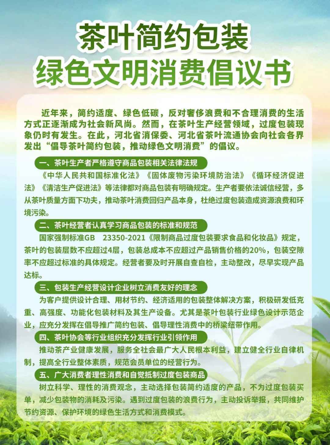 秦皇島市茶文化協(xié)會關(guān)于“茶葉簡約包裝,綠色文明消費”的倡議書